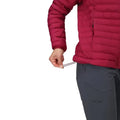 Materialul de nailon reciclat 30D este rezistent, dar ramane placut si silentios la miscare in trasee. Croiala feminina ofera spatiu pentru un polar subtire, fara sa arate voluminoasa sau rigida pe sub rucsac. Buzunarele cu fermoar pastreaza telefonul si manusile in siguranta cand alergi intre destinatii in zilele aglomerate.