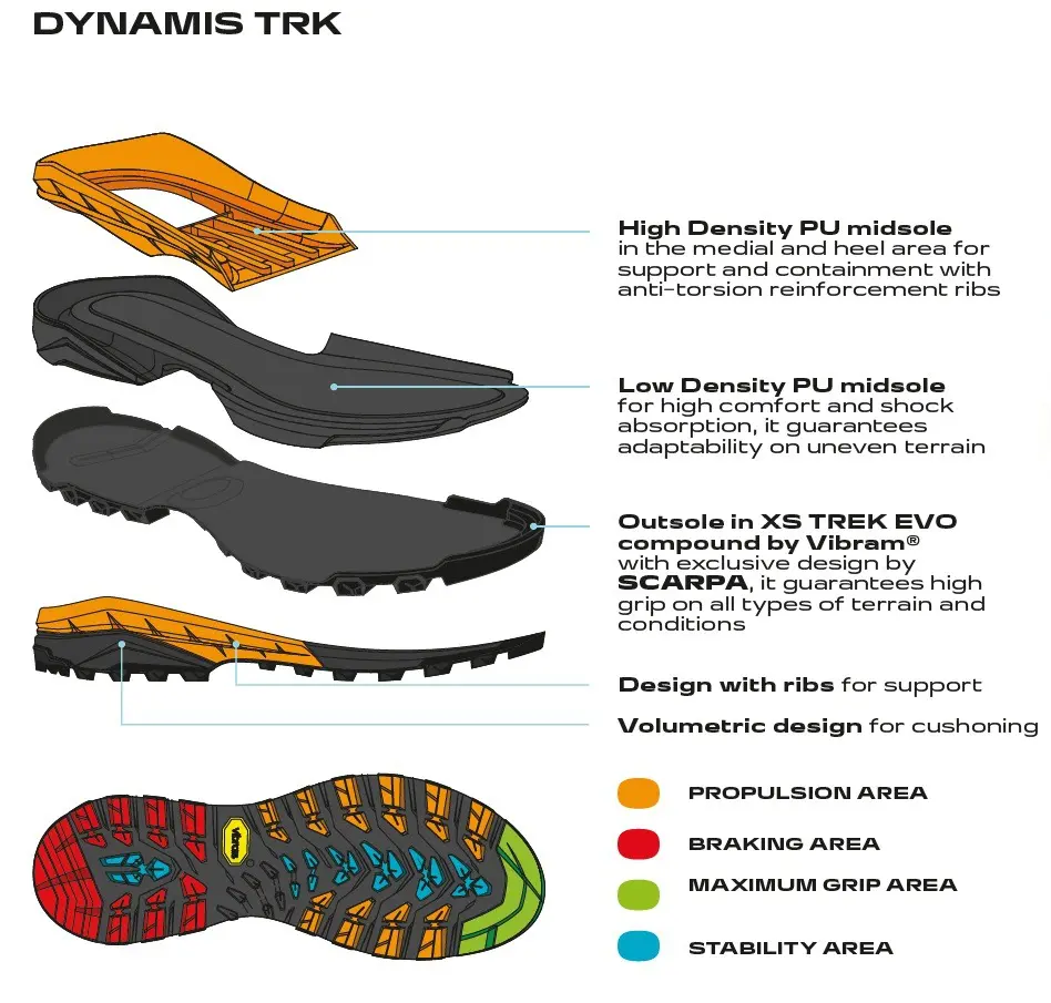 - Talpa exterioara: Vibram XS TREK EVO pentru aderenta si tractiune pe teren variat